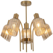 Transform your living space with the entrancing, sculptural design of the Ambrose Gold and Amber Fluted Glass 3 | 5 Light Chandelier. Neutral tones complement a range of styles, from modern and Scandinavian to Hamptons-inspired, for versatility. Perfect for your dining room or living area for practical lighting that exudes class.