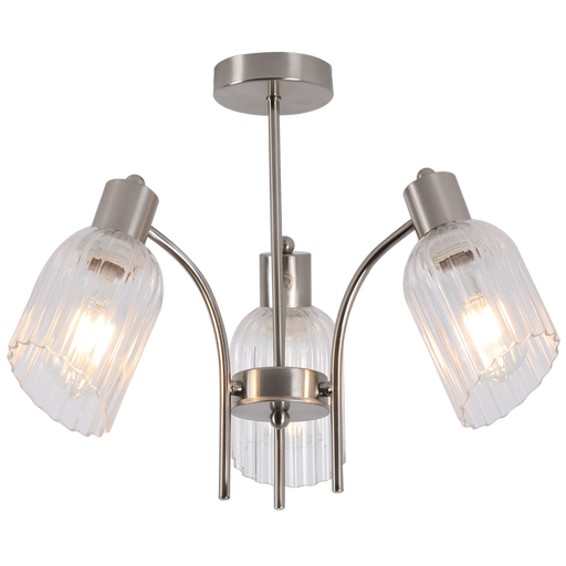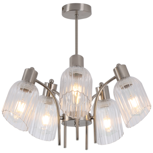 View full detailsTransform your living space with the entrancing, sculptural design of the Ambrose Satin Chrome and Clear Fluted Glass 3 | 5 Light Chandelier. Neutr...