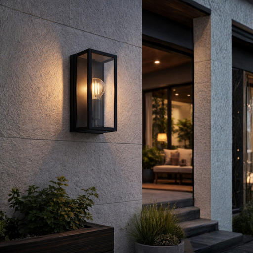 Rubik Black and Clear Glass Outdoor Lantern Wall Light